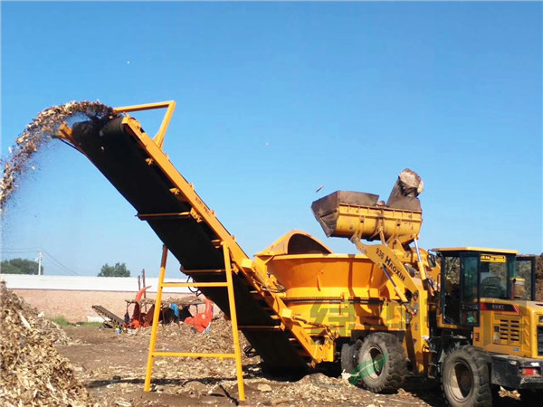 ? ? ? ? ?圆盘式树根破碎机工作时,由电机带动转子进行高速旋转,同时进料斗也在电机的带动下进行缓慢的旋转,物料经抓机投放进料斗,料斗在旋转的同时内壁上的拨料齿会将物料均匀的拨到转子上,高速旋转的转子碰到物料经由转子上刀片的切削和撕扯实现物料的初步破碎,进过初步破碎的物料无在自身重力和转子冲击力的作用下掉在破碎腔内的筛网上,符合要求的物料会通过筛网排出,而不符合要求的会在破碎腔内进行二次甚至三次的破碎加工直至符合要求。